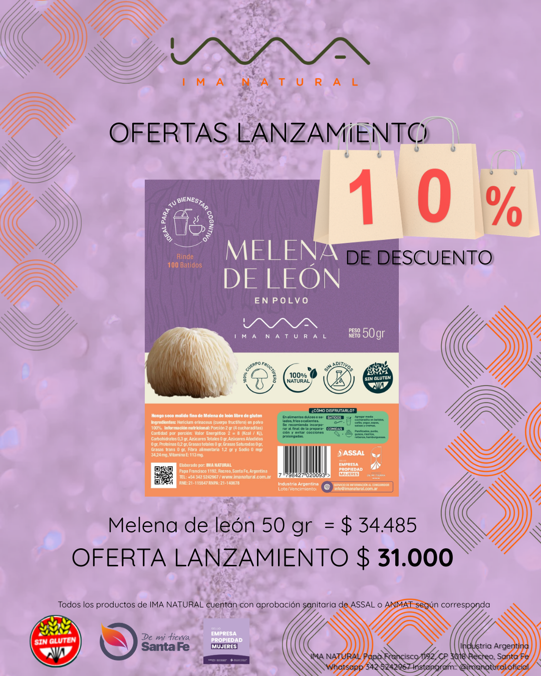 El producto es natural elaborado con 100% de cuerpo fructífero de hongo melena de león.
